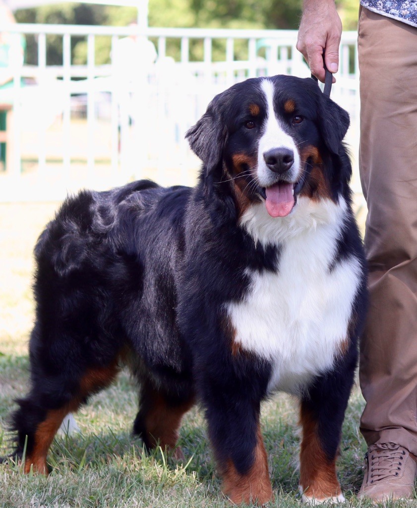 19 mois, petit modèle harmonieux. Excellent couleurs et textures Excellente tête encore un peu jeune.Excellent ?il foncé. Excellent museau bien rempli, narines sainesDCC, Excellent dessus déjà bien suivi Excellente Ossature, Excellente poitrine, allures dégagées, Excellente Pause, Excellent caractère 1 ère / 29 chiens participants BOB Best of Breeder